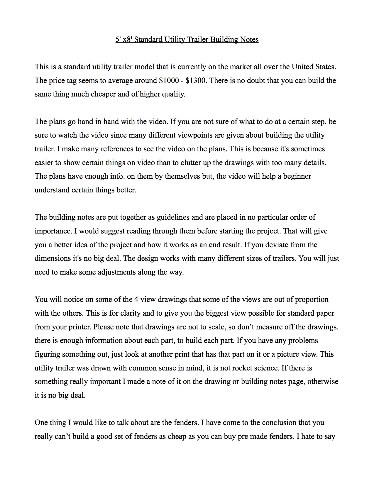 Red Wing Steel Works 5×8 utility trailer plans notes 1